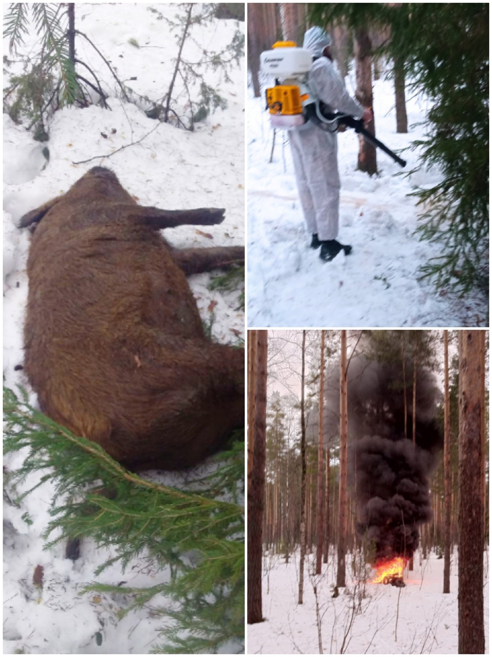 В целях профилактики распространения африканской чумы свиней и в соответствии с пунктом 11 Ветеринарных правил осуществления профилактических, диагностических, ограничительных и иных мероприятий, установления и отмены карантина и иных ограничений, направленных на предотвращение распространения и ликвидацию очагов африканской чумы свиней, утвержденных приказом Минсельхоза России от 28.01.2021 № 37, охотники и приравненные к ним лица обязаны обеспечить уничтожение отходов после разделки туш добытых диких кабанов путем сжигания.